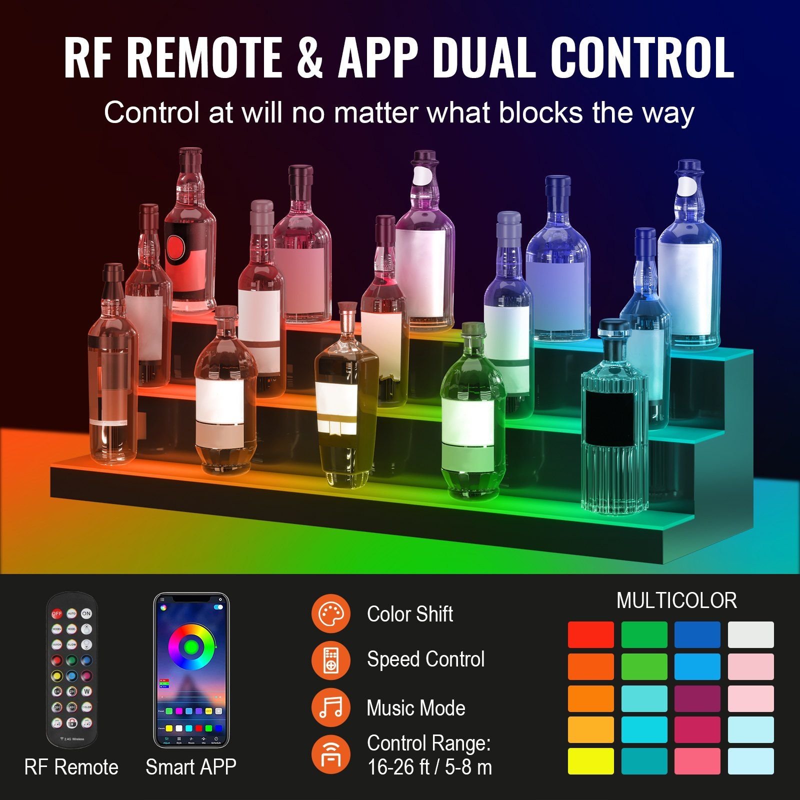 VEVOR LED Lighted Liquor Bottle Display, 3 Tiers 40 Inches, Illuminated Home Bar Shelf with RF Remote & App Control 7 Static Colors 1-4 H Timing VEVOR LED Lighted Liquor Bottle Display, 3 Tiers 40 Inches, Illuminated Home Bar Shelf with RF Remote & App Control 7 Static Colors 1-4 H Timing VEVOR LED Lighted Liquor Bottle Display, 3 Tiers 40 Inches, Illuminated Home Bar Shelf with RF Remote & App Control 7 Static Colors 1-4 H Timing